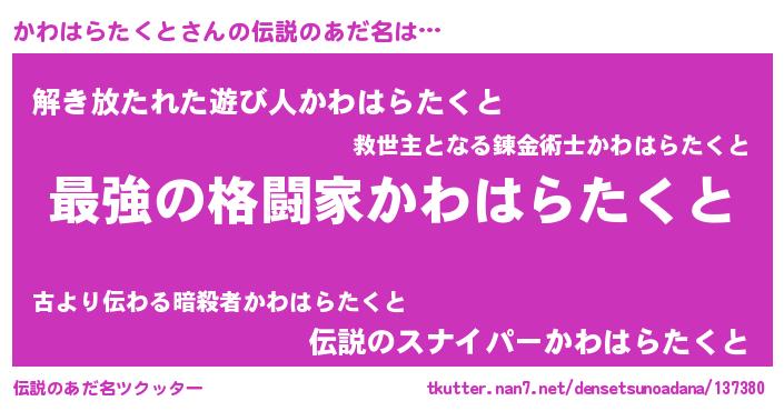 | ファンタジー風あだ名 | 『エターナルカワハラタクトー』 |