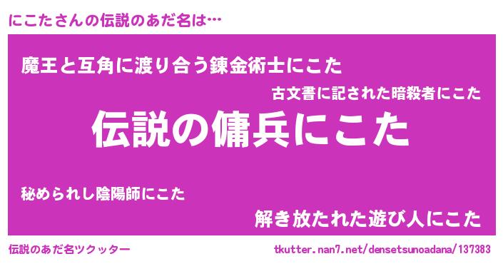 | ヒーロー風カッコイイあだ名 | 『スーパーニコタ』『友情の使者にこた』 |
