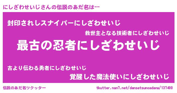| 意味不明あだ名 | 『にしざわせいじフォーエバー』 |