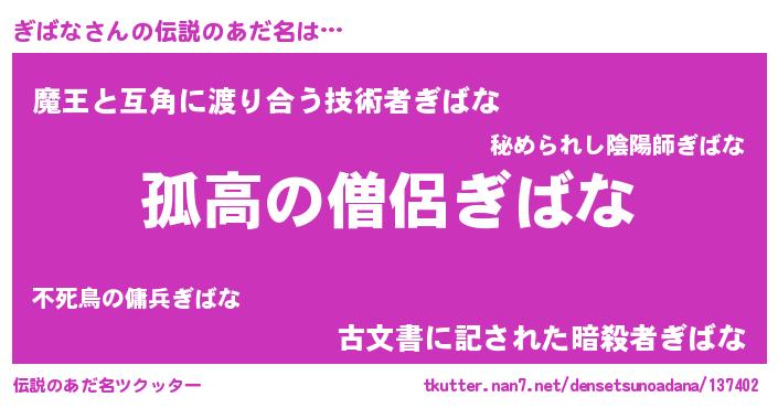 | ヘコむあだ名 | 『ぎば太郎』『ぎばな(遠い目)』 |