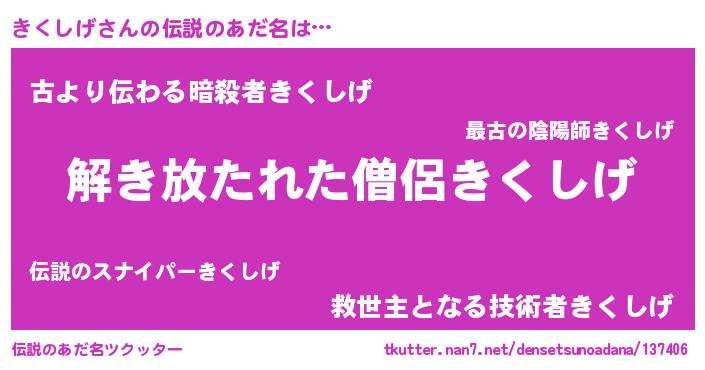 | 胡散臭い通販商品みたいなあだ名 | 『テレビで話題のアガリクス…その名も「きくしげ」』 |