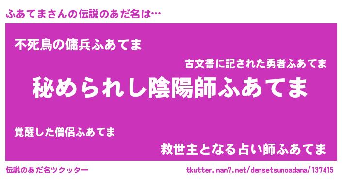 | ヒーロー風カッコイイあだ名 | 『ウルトラふあてまマン』『ネオフアテマ』 |
