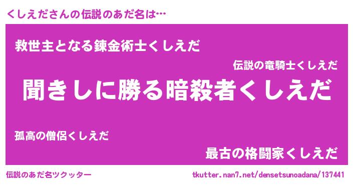 | 胡散臭い通販商品みたいなあだ名 | 『絶対に幸福をもたらす健康食品…その名も「くしえだ」』 |