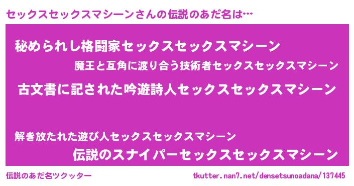 | 意味不明あだ名 | 『住所不定無職セックスセックスマシーン(7歳)』 |
