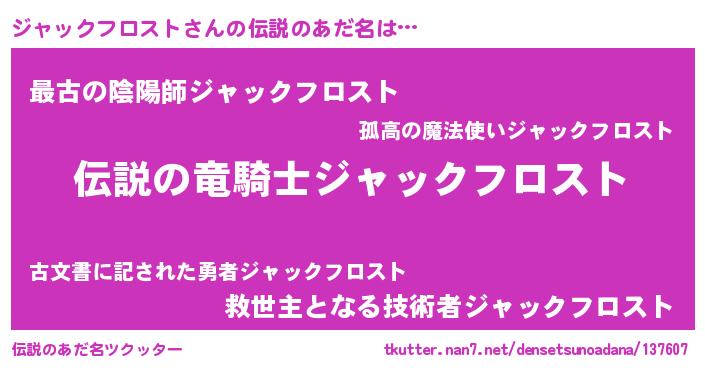 | 女子向けラノベタイトル風あだ名 | 『ジャックフロストなんてお断りですっ。』 |