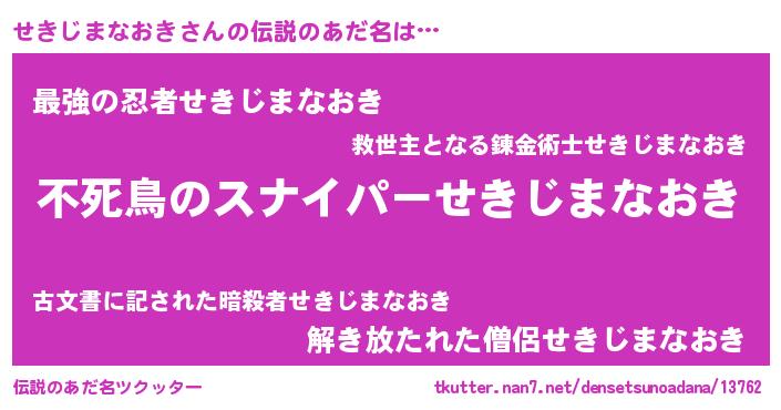 | 女子向けラノベタイトル風あだ名 | 『せきじまなおきアンティーク』 |