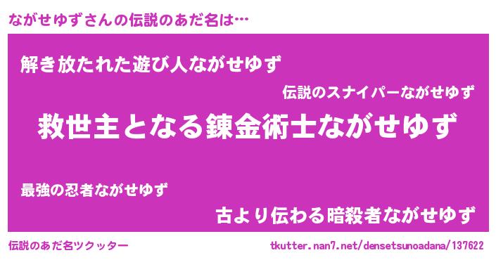| ヒーロー風カッコイイあだ名 | 『天空の使者ながせゆず』『銀牙騎士ナガ』 |