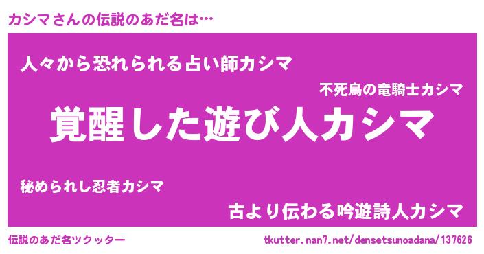 | 意味不明あだ名 | 『住所不定無職カシマ(93歳)』『自称カシマ』 |