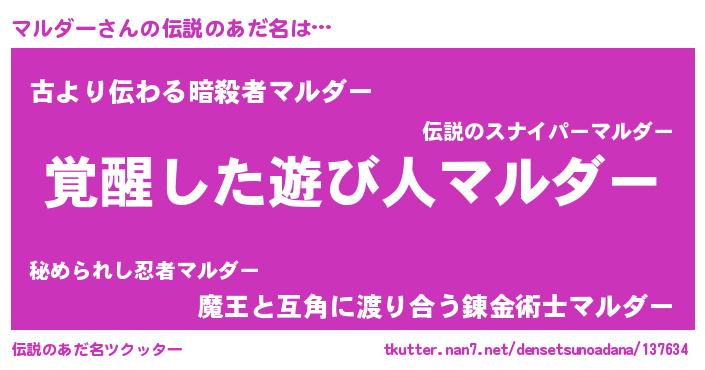| ヒーロー風カッコイイあだ名 | 『幻影騎士マル』『仮面マルダー』 |