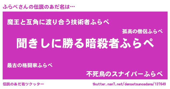 | 意味不明あだ名 | 『永久保存ふらぺ』『自称ふらぺ』 |
