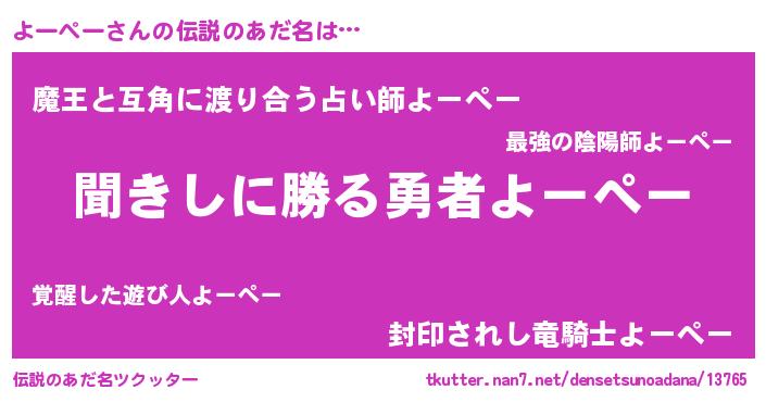 | 意味不明あだ名 | 『永久保存よーぺー』『自称よーぺー』 |