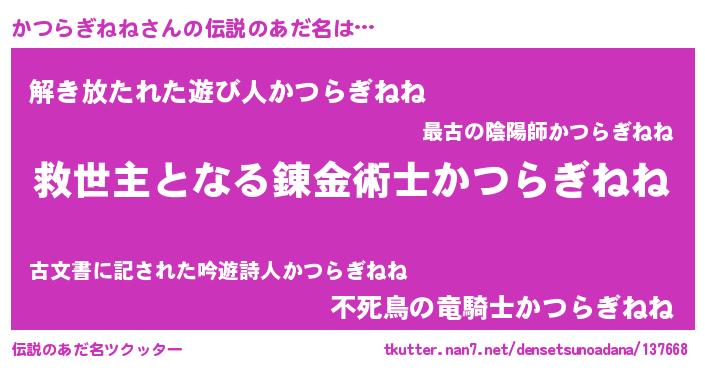 | 意味不明あだ名 | 『自称かつらぎねね』 |