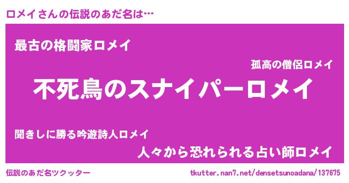 | ファンタジー風あだ名 | 『ロメフェル』『エターナルロメイー』 |