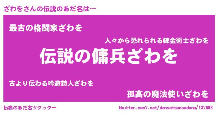 | ファンタジー風あだ名 | 『ザワフェル』『カークザワラー』 |