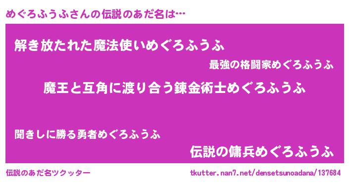 | ヒーロー風カッコイイあだ名 | 『慈愛の使者めぐろふうふ』 |