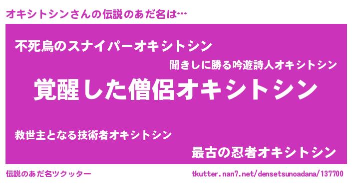 | ヒーロー風カッコイイあだ名 | 『究極戦士オキシトシン』『銀牙騎士オキ』 |