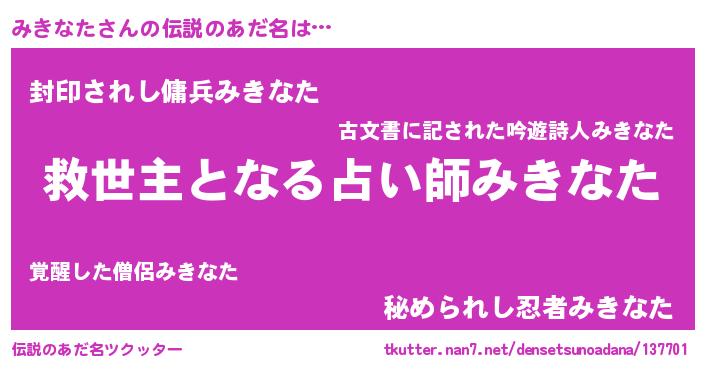 | 意味不明あだ名 | 『つくし科みきなた属』『自称みきなた』 |
