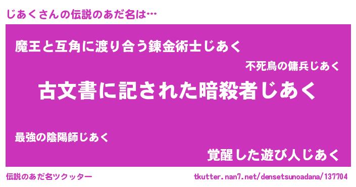 | ヘコむあだ名 | 『じあく(苦笑)』『じあぷりん』 |