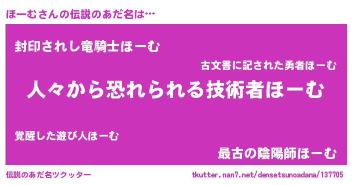 | ヒーロー風カッコイイあだ名 | 『超時空戦士ホーム』『天空の使者ほーむ』 |