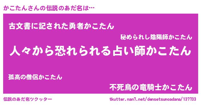 | ヒーロー風カッコイイあだ名 | 『正義の使者かこたん』『ネオカコタン』 |