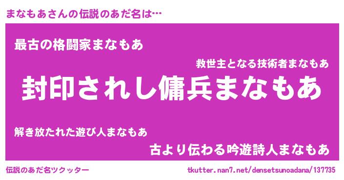 | ヒーロー風カッコイイあだ名 | 『スーパーマナモア』『仮面マナダー』 |