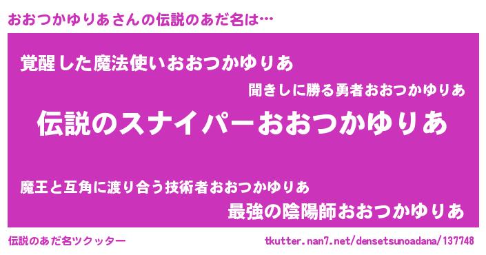 | 肩書あだ名 | 『おおつかゆりあ大将』 |