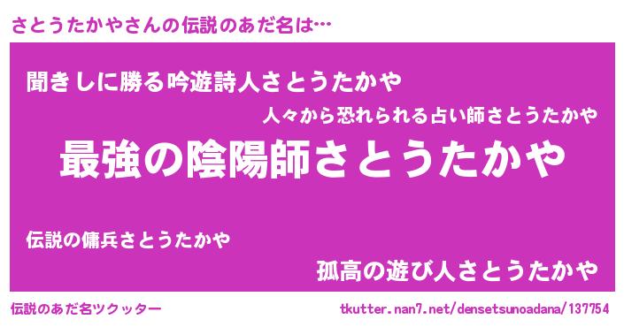 | ファンタジー風あだ名 | 『エターナルサトウタカヤー』 |