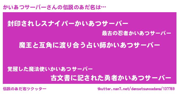 | 意味不明あだ名 | 『自称かいあつサーバー』 |
