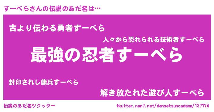| ヒーロー風カッコイイあだ名 | 『ウルトラすーべらマン』『ネオスーベラ』 |