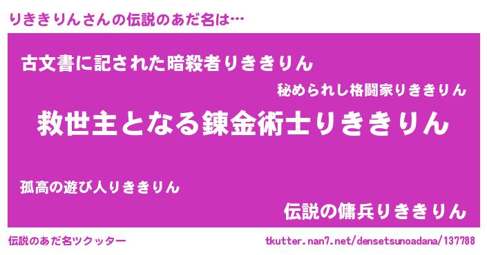 | ファンタジー風あだ名 | 『クインリット』『リキディッシュ』 |