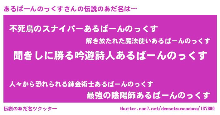 | 男性向けラノベタイトル風あだ名 | 『あるばーんのっくすという概念が存在しない退屈な世界 』 |