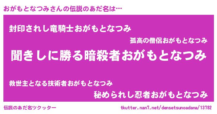 | 男性向けラノベタイトル風あだ名 | 『おがもとなつみという概念が存在しない退屈な世界 』 |