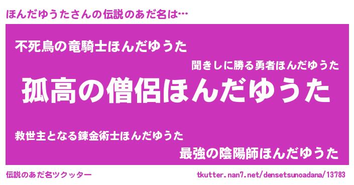 | 男性向けラノベタイトル風あだ名 | 『ダンジョンにほんだゆうたを求めるのは間違っているだろうか』 |