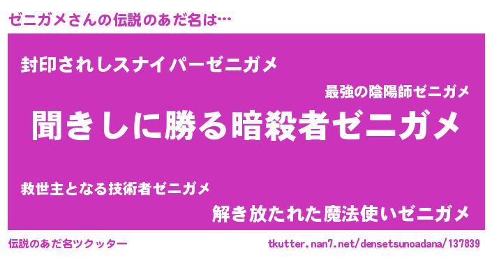 | ヒーロー風カッコイイあだ名 | 『ネオゼニガメ』『スーパーゼニガメ』 |