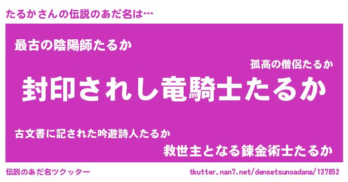 | 意味不明あだ名 | 『住所不定無職たるか(12歳)』『自称たるか』 |