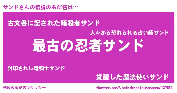| ファンタジー風あだ名 | 『エターナルサンドー』『ゼサントゥ』 |
