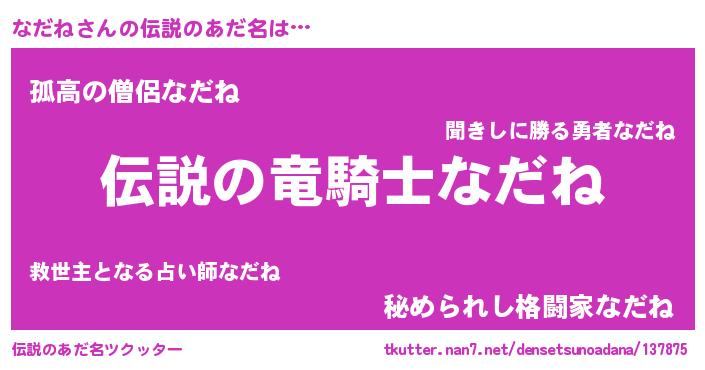 | 男性向けラノベタイトル風あだ名 | 『なだねの憂鬱』『魔弾の王となだね』 |