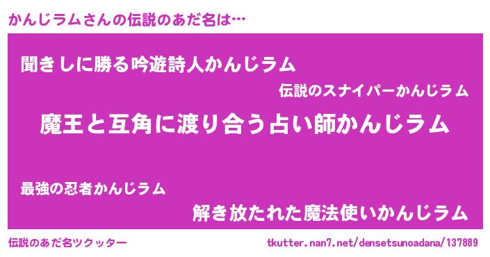 | ヒーロー風カッコイイあだ名 | 『愛の使者かんじラム』『ネオカンジラム』 |