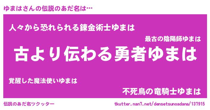 | ヘコむあだ名 | 『ゆまは(震え声)』『ゆまもー』 |