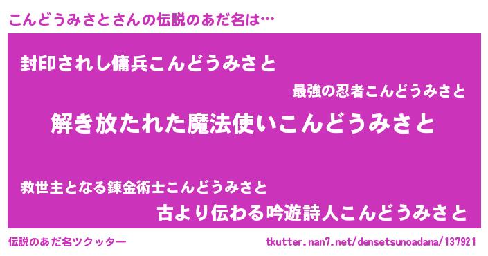 | 意味不明あだ名 | 『とにかく怪しいこんどうみさと』 |