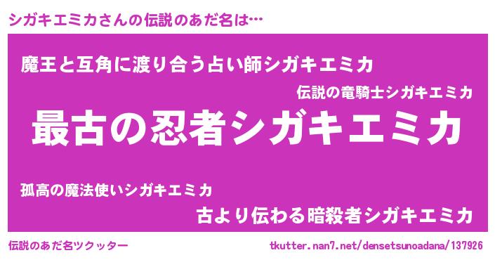 | ヒーロー風カッコイイあだ名 | 『ウルトラシガキエミカマン』 |