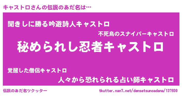 | 意味不明あだ名 | 『キャストロフォーエバー』 |