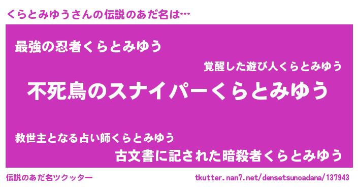| 胡散臭い通販商品みたいなあだ名 | 『モテモテ間違いなし霊験あらたかなお札…その名も「くらとみゆう」』 |