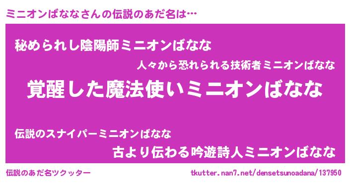 | 意味不明あだ名 | 『とにかく怪しいミニオンばなな』 |