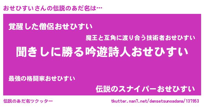 | 意味不明あだ名 | 『永久保存おせひすい』『自称おせひすい』 |