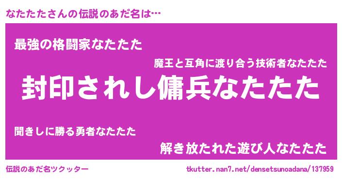 | ヒーロー風カッコイイあだ名 | 『最強戦士ナタタタ』『スーパーナタタタ』 |