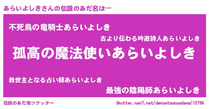 | ヒーロー風カッコイイあだ名 | 『超時空戦士アライヨシキ』 |