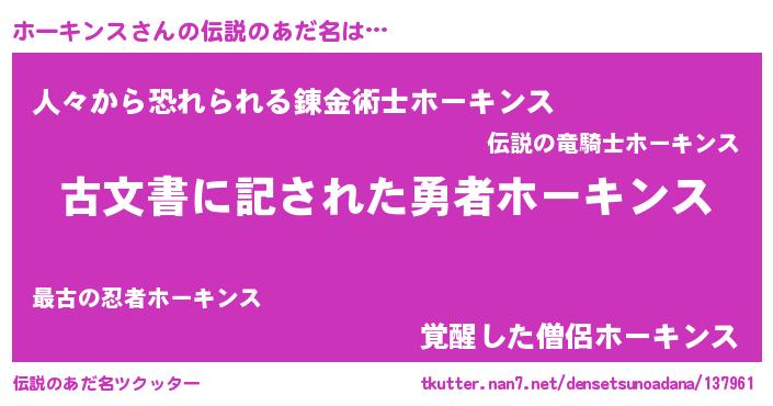 | ヒーロー風カッコイイあだ名 | 『ネオホーキンス』『愛の使者ホーキンス』 |