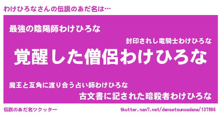 | 意味不明あだ名 | 『とにかく怪しいわけひろな』 |