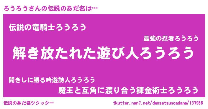 | ヒーロー風カッコイイあだ名 | 『幻影騎士ロウ』『ウルトラ戦士ロウロウ』 |